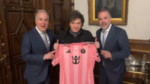 El Presidente Javier Milei y su hermana Karina, secretaria general de la Presidencia, recibieron una remera del Inter Miami autografiada por el mejor jugador del mundo, Lionel Messi que decía “con cariño”, a través de Jorge Más Santos, principal accionista del Inter Miami, que visitó Argentina este jueves para reunirse con funcionarios del Gobierno nacional con el objetivo de explorar posibles inversiones en el país.