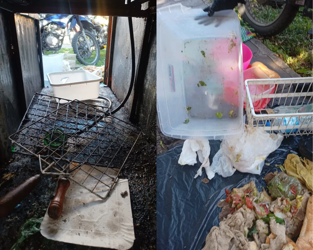 El lugar no contaba con agua corriente, requisito básico para la comercialización de alimentos al público. Además, se encontraron recipientes sucios en los que se almacenaban los alimentos, lo que puede derivar en contaminación cruzada. Toda la mercadería secuestrada fue desnaturalizada.