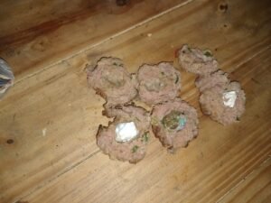 Al momento de controlar los alimentos, se observó ocultos en el interior de unas albóndigas, envoltorios con pastillas y envoltorios con sustancia vegetal disecada.