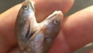 Un pescador sacó una mojarra, la cual se utiliza generalmente como carnada para el pejerrey, de dos cabezas.
