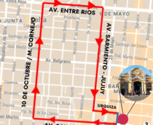 Recorrido: Ituzaingó- Avenida San Martín-10 de Octubre-Martín Cornejo-Avenida Entre Ríos-Avenida Sarmiento-Avenida Jujuy-Urquiza- Punto de Llegada: Mercado San Miguel