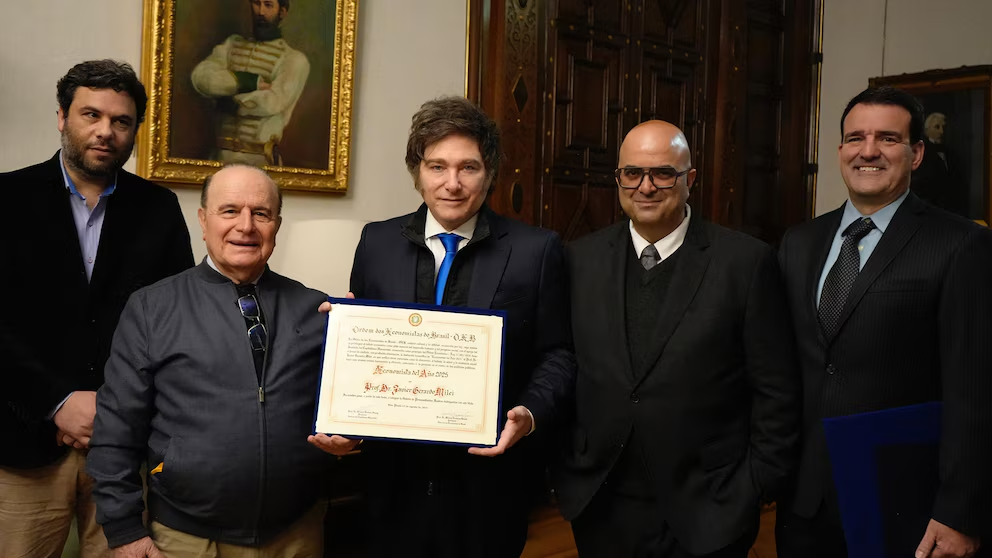 El Presidente Javier Milei recibió la distinción «Economista del Año 2025» por la Ordem Dos Economistas Do Brasil, entidad civil con base en San Pablo que tiene como objetivo difundir el conocimiento económico en la región.