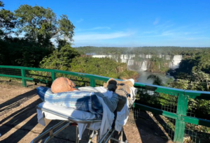 El paciente Valmiro Aparecido da Silva, de 54 años, fue la primera persona en ingresar al Parque de Foz, Brasil desde su camilla hasta el mirador, donde logró obtener una vista panorámica de las cascadas en compañía de sus hermanas María Aparecida y Cenira, como también de un grupo de médicos.