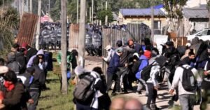 Tras dos horas de intervención, evitaron la toma de los terrenos. No obstante, varios móviles y elementos de protección policial resultaron dañados producto de los elementos arrojados contra ellos.
