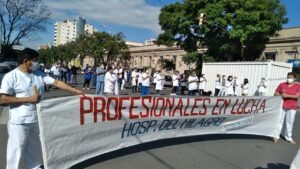 En la provincia continúa el reclamo de los profesionales de la salud que vienen registrándose hace meses en busca de consignar las paritarias para los próximos meses pretendiendo la recomposición salarial en relación con los índices inflacionarios.