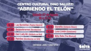 También se desarrollarán diferentes obras de teatro en el Centro Cultural “Dino Saluzzi”, el sábado 27, de 16 a 21 horas. Esta propuesta contará con múltiples números artísticos de teatro, circo, música y acrobacia para todo público y además se podrá disfrutar de gastronomía con productos orgánicos.
